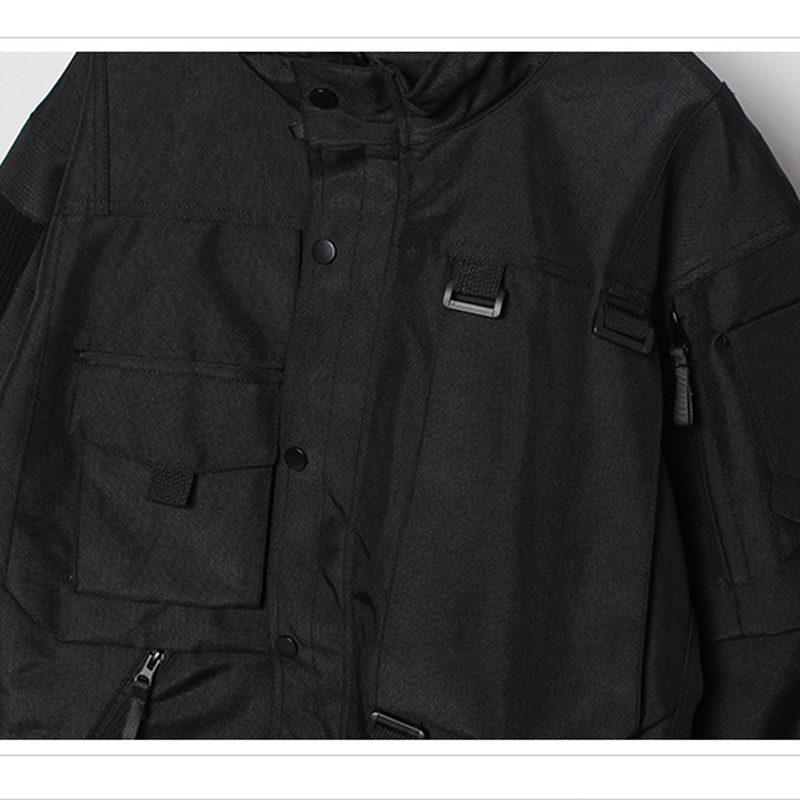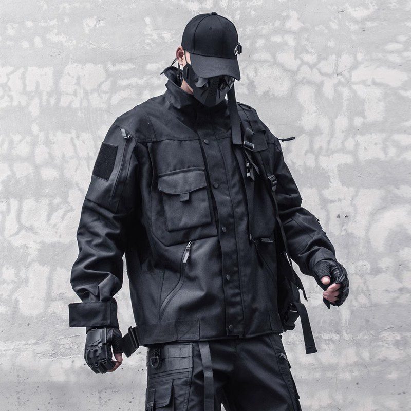 Le design de ce manteau techwear et sa coupe regular sont un mélange de streetwear et de techwear warcore. Il est à la fois confortable et pratique, s’adaptant à la silhouette masculine. De couleur noire, il est discret tout en ayant un côté tactique issu de la mode militaire.